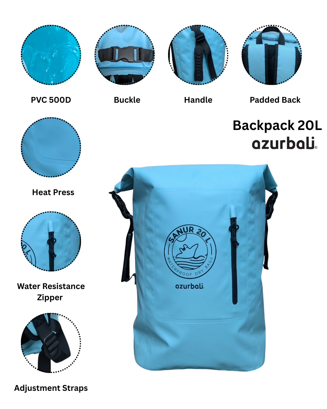 - 100% waterproof material: PVC 500D