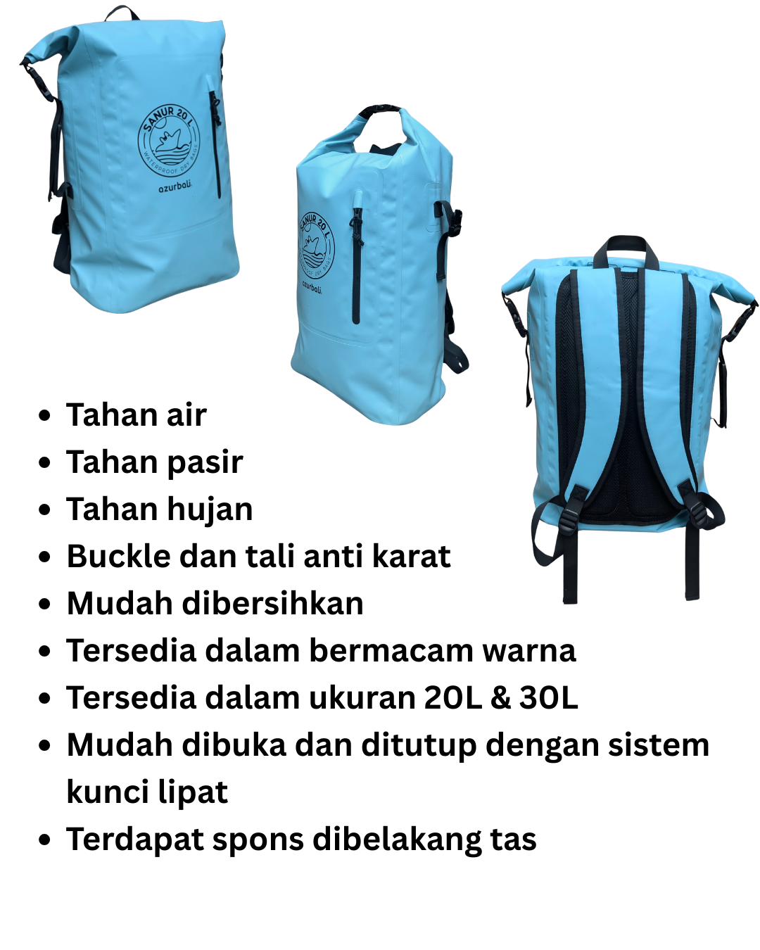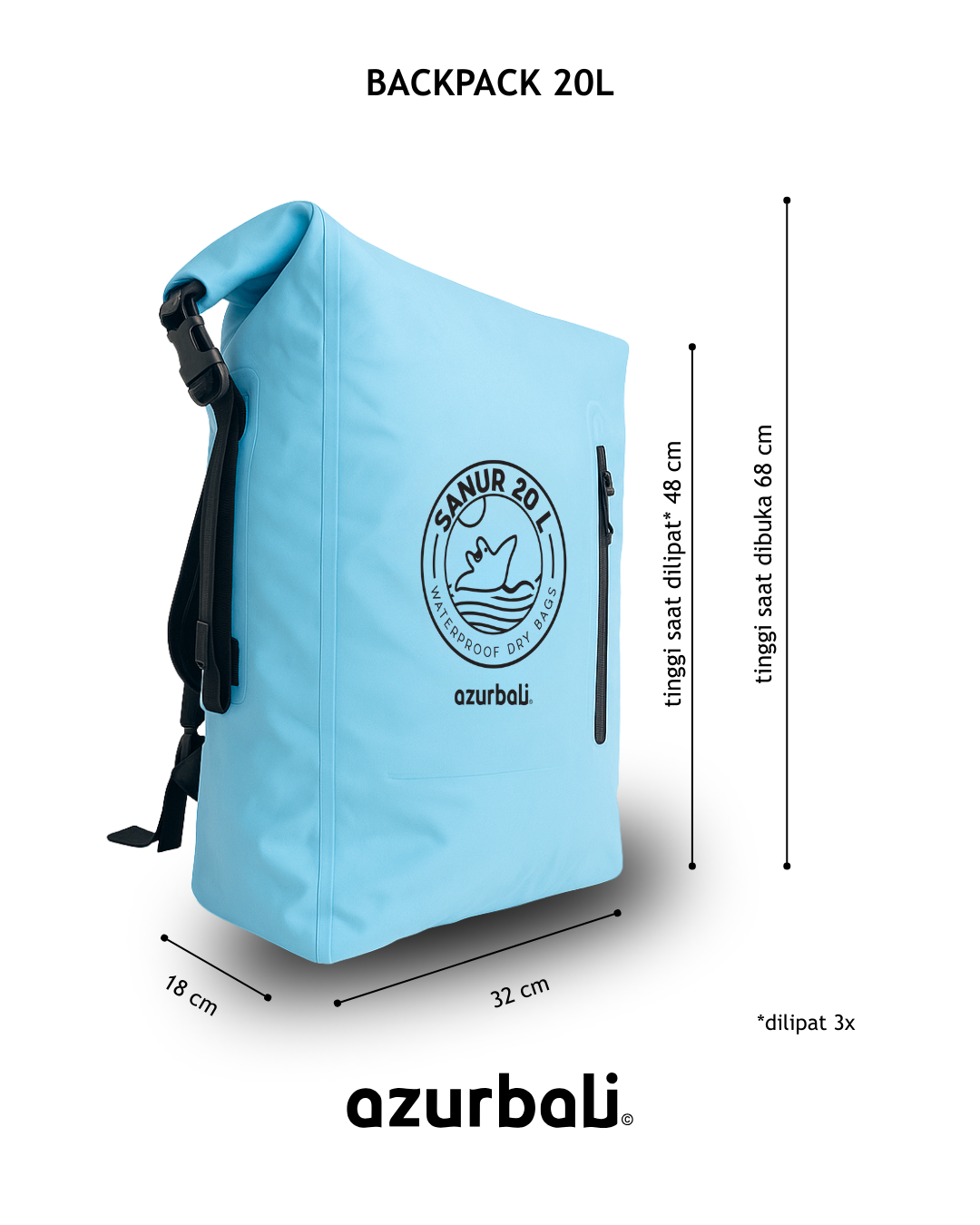 - Shape: Cylinder dry bag with two comfort shoulder straps