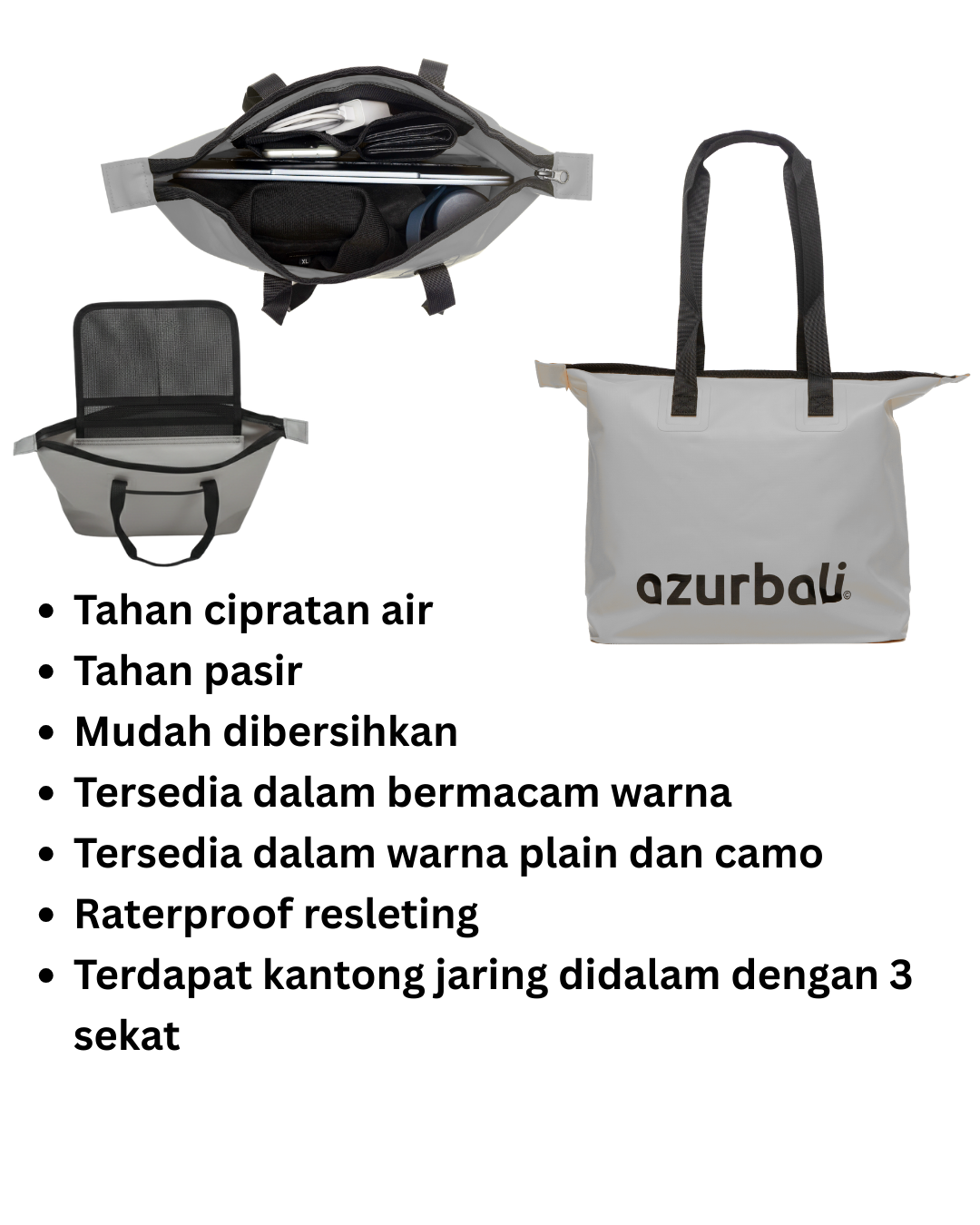 A practical tote bag and a more feminne line from the range of Azurbali drybags to go shopping hassle free