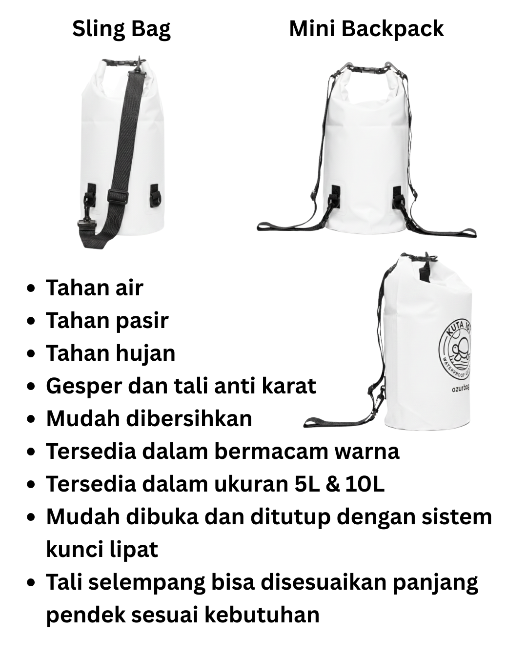 A practical sling bag and waterproof drybag with perfect size for easy traveling
